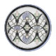 Das originelle Design dieses eleganten Charcuterie-Brettes verbindet den Übergang vom Jugendstil zum Art Déco mit einem hohen, sich wiederholenden Ziermuster aus blau-grünen, opaleszenten Scallop Seashells, Celadon & Blassrosa Lilies, schneeweißen Seilen, die in "Double Dutch" Mode und schwarz-gotischen Bögen verwoben sind.
