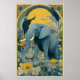 Dieses blaue und gelbe Jugendstil-Zirkusposter ist eines von vier (jeweils separat erhältlich). Es zeigt einen dressierten Elefanten.