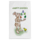 Der Osterhase jongliert die Ostereier, während das kleine Huhn das Publikum ist.