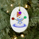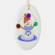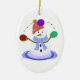 Ein cooler Schneemann, der rote, lila und grüne Bälle jongliert. Alles in seinen Hut und Schal eingewickelt.