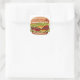 This mouthwatering double cheeseburger sticker features a vibrant, highly detailed illustration of a classic American burger stacked high with juicy beef patties, melted cheese, fresh lettuce, tomatoes, pickles, and a golden sesame bun.