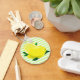 Dieses Design besteht aus zwei Zitronen (einer halbiert) auf einem hellgrünen, horizontalen Streifen Hintergrund.