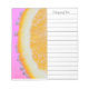 Juckreiz und erfrischend in einer Orange mit einem lebhaften, hellen rosa Hintergrund. Auf der Seite einer Einkaufs-/Einkaufsliste. Text ist vollständig anpassbar. Foto von Ruth Jolly.