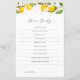 Juicy Yellow Citrus Baby Dusche Liebe Baby Game Card. Mit diesem hellen Aquarelldesign ist diese Babydusche-Kollektion der perfekte Weg, um die Geburt Ihres neuen Babys zu feiern.