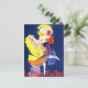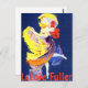 Jules Cheret Folies Bergere Postcard. Lithograph Art Nouveau Poster um die 1890er. Jules Cheret war einer der großen Jugendstil-Poster-Künstler. Seine Arbeit für die Jahrhundertwende Ballets, Bars und Fahrräder ist nach wie vor eines der beliebtesten Plakatwerke der Epoche. Diese Werbung für die Kaberettsaal Folies-Bergere ist eine seiner schönsten und mit einem hübschen, jungen Rotkopftanzen in einem fließenden gelben Kleid ausgestattet. Der Ausdruck ist rot auf blauem Hintergrund. Ein wunderschönes Geschenk für Fans von Jules Cheret, Vintages Kabarett und Jugendstil-Poster.