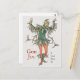 Förr i tiden var det inte så ovanligt att man tecknade mänskor så att de nästan såg ut som blommer eller växter. Dethär julkortet är inspirerat av en sådan teckning av Walter Crane (Storbritannien, 1845-1915). Bilden föreställer en 'järneksman', det vill säga en man som är dekorerad med, eller kanske snarare insvept i, järneksblad och -bär. Järneken hör bis vintergröna växter och är en viktig juldekoration särskilt i engelskspråkiga länder. De vintergröna bladen och de röda bären lyser upp och ger hopp under den kallaste och mörkaste tiden på året, viskar att snart så är det vår igen!