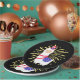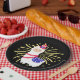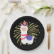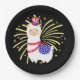 Niedliches Lamm in einem roten Pom und eine blau-weiße Sterndecke in einem Hut für eine Feier am 4. Juli.