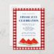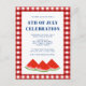 Laden Sie Familie und Freunde zu Ihrem Fest mit dieser 4. Juli Einladung Postcard. Er ist mit Wassermelonen in Rot-Weiß-Karo mit Büffel dekoriert. Einfach anpassbar. Diese Festveranstaltung ist perfekt für jeden Amerikanische Unabhängigkeitstag. Ändern Sie mithilfe des Entwurfstools die Textgröße, den Stil oder die Farbe. Weil wir unsere Kunstwerke erstellen, werden Sie dieses exakte Bild von anderen Designern nicht finden. Original Wasserfarbe © Michele Davies.