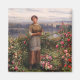 Dieses Design zeigt ein Gemälde des amerikanischen Künstlers Daniel Ridgway Knight (1839-1924). Es zeigt eine attraktive junge Frau mit Gartenscheren in ihren Händen. Sie hat die Blume von Rose geschnitten, um sie in Körben zu sammeln. Es ist ein wunderschöner Ort für die traditionelle Gartenarbeit und das Sammeln von Blume. Im Hintergrund ist ein großer See, der Himmel ist hell, aber trüb. Rose werden oft als Symbol romantischer Liebe gesehen. Das Originalwerk wurde 1900 gemalt.