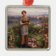 Dieses Design zeigt ein Gemälde des amerikanischen Künstlers Daniel Ridgway Knight (1839-1924). Es zeigt eine attraktive junge Frau mit Gartenscheren in ihren Händen. Sie hat die Blume von Rose geschnitten, um sie in Körben zu sammeln. Es ist ein wunderschöner Ort für die traditionelle Gartenarbeit und das Sammeln von Blume. Im Hintergrund ist ein großer See, der Himmel ist hell, aber trüb. Rose werden oft als Symbol romantischer Liebe gesehen. Das Originalwerk wurde 1900 gemalt.