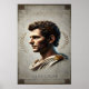 Dieses moderne, realistische Porträt von Julius Caesar zeigt den legendären römischen Führer in einem zeitgemäßen, künstlerischen Stil. Seine markanten, scharfen Gesichtszüge, das kurz gelockte Haar und der entschlossene Ausdruck verleihen ihm eine Aura von Autorität und Intelligenz. Der Hintergrund ist subtil gestaltet mit Anspielungen auf antike römische Elemente wie Marmorstrukturen und Lorbeerkränze, die Tiefe und historische Bedeutung vermitteln. Das Porträt vereint historische Authentizität mit modernem Flair, ideal für Kunstsammler und Liebhaber klassischer Antike, die eine kraftvolle und zeitlose Darstellung von Caesar schätzen.