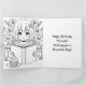 Eine große niedliche Geburtstag-Karte für eine Tochter, Enkelin oder Nichte mit einem niedlichen Anime-Mädchen, das ein Buch liest, das von Blume und musikalischen Noten umgeben ist. Im Inneren können Sie ihren Namen in den personalize Bereich. Es gibt auch eine Farbseite auf der Innenseite.