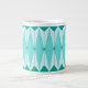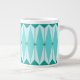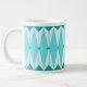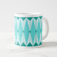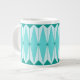 Die Jumbo-Tasse Geometric Diamonds & Sternexplosionen besticht durch ihren kitschigen Charme. Das Vintag inspirierte Design umfasst eine Mod, einen pfauenblauen Hintergrund mit hellblauen, lang gestreckten Hexagonen, mit türkisfarbenen Diamanten geschichtet, und pfauenblaue Sternexplosionen. Es ist ein Kaleidoskop der Retro-Güte! Das Design des Palm Spring aus den 1950er und 1960er Jahren sieht genauso aus, als ob es auf einem modernen Motel-Schild aus der Mitte des Jahrhunderts oder im Haus Ihrer Lieblings-Fernsehfamilie im klassischen Zuhause wäre.
