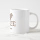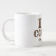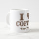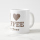 Eine Jumbo-Tasse mit einem "I Heart Coffee"-Sprichwort aus Kaffeebohnen und einem Ort, um Ihren Namen einzugeben. Ein Geschenk, das für sich selbst oder für jeden Kaffeetrinker perfekt ist.