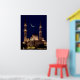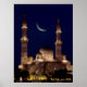 Nachtaufnahme der berühmtesten Moschee von Dubai. Scannen einer doppelt belichteten Komposition in 135 mm Farbfilm.