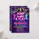 Sprung in die Schlange und spielen mit einem Trampolin Park Geburtstagsfeier Einladung in leuchtenden Regenbogenfarben für Mädchen und Jungen.