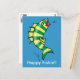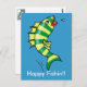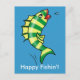 Ein grün und gelb gefärbter Springfisch mit einem großen roten Mund, ein Spaß zeichnend von Ans Collijn © Coole Postcard, um jemanden wünschen Happy Fishin'!
