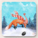 Glücklicher Fuchs springt in ein Loch im Schnee.