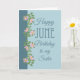 June Birthday Card für Schwester: Dogroses on Blue Karte