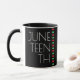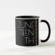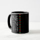 Eine Jubelfeier Kaffeepause Tasse. Es hat ein Design mit schwarzem Hintergrund, einem roten, schwarzen und grünen Streifen, die Buchstaben sind weiß.