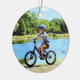 Dieser kleine Junge lasse seine Fantasie frei laufen, während er mit dem Fahrrad durch den See im Park fährt.