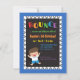 Eine Einladung, die wie ein Trampolin aussehen soll, bei dem das Wort in großen Schriftart mit jedem Buchstaben in einer anderen Farbe des Regenbogens aufprallt! Ein Junge in weißem Tee und blauen Hosen prallt glücklich darauf. Für jeden, der die Geburtstagsparty in den Trampolin-Parks oder im eigenen Garten veranstaltet. Personalisieren Sie Ihre Party-Details in farbigen Texten.