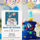 Jungs Außenraum, Niedlich, einfache Wasserfarbe Geburtstag Einladung. Im Design spielt ein kleiner Junge in seinem Schlafzimmer als Astronaut. Die Hinterwand des Raumes zeigt niedliche Bilder des Weltraums mit Sternen, Raketen und einem Planeten. Ideal für die kleinen Jungs, die von einer Mondlandung träumen! Passen Sie es mit dem Namen Ihres Kindes und den Angaben zur Geburtstagsfeier an. Copyright steigt in Style Designs LLC.