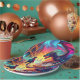 Teller zum Thema Geburtstag. Ein kleiner Junge, der durch eine verlassene Stadt geht, findet einen Drachen in einer dystopischen Welt.