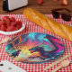 Junge begegnet einem Drachen in einer dystopischen Pappteller