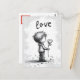 Senden Sie herzliche Wünsche mit unserer bezaubernden Postkarte zum Valentinstag. Diese Schwarz-Weiß-Abbildung zeigt einen hübschen Jungen, der eine Blume mit dem Wort "Liebe" oben hält. Ein zeitloser Ausdruck der Zuneigung! Minimalismus.
