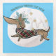 Whimsical Junge Dackel Hund in festlich rot und grün Raute Pullover auf blauem Hintergrund ist das perfekte Design für Dackel Liebhaber überall.