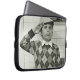 Junge, der eine hölzerne Klinge hält Laptopschutzhülle