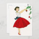 Junge Frau in rotem Kleid, die Weihnachtsbaum schm Postkarte
