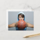 Junge Frau mit Basketball und Kamera Postkarte