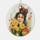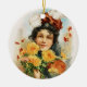Junge Frau mit gelben Chrysanthemen Keramik Ornament