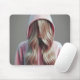 Junge Frau versteckt sich hinter dem langen blonde Mousepad