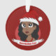 Weihnachtsschmuck mit einer Illustration einer wunderschönen jungen Afroamerikanerin mit scharfen Haaren und einem Hut des Weihnachtsmanns; mit bearbeitbarem Text, Weihnachtsfeierdesign mit rotem Hintergrund