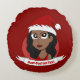 Rundkissen mit einer Illustration der schönen jungen Afrikanerin mit scharfen Haaren und dem Hut des Weihnachtsmanns; mit bearbeitbarer Textvorlage, Weihnachtsferien-Design mit rotem Hintergrund