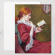 Dieses Design zeigt ein Gemälde des italienischen Impressionisten Federico Zandomeneghi (1841-1917). Es zeigt eine modische junge Dame, die ein leuchtend rotes Kleid trägt, während sie sich in einem stilvollen Stuhl mit einem Buch in der Hand zurückzieht. Sie genießt es, den Text zu lesen, und sie ist in ihrer eigenen Fantasie verloren. Das ursprüngliche Kunstwerk wurde 1897 gemalt, und seine hellen Farben und eleganten Pinselstriche schaffen eine Szene von echter Schönheit.