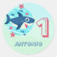 Ein Jahr / Junge Geburtstag Ozean blauer Baby Hai Geschenkpackung oder Siegel lustige niedliche Gefallen Aufkleber mit einem kleinen Hai Schwimmen unter Wasser mit Fisch und roten Sternen. ++++++++++++ Einfach mit dem Namen und Alter Ihres Kindes personalisieren.