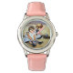 Kinderuhr aus Edelstahl mit rosa Lederarmband