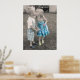 Vintages Porträt eines kleinen Jungen und Mädchens, das küsst.