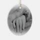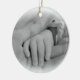 Junge Mutter und Baby, die HandFoto halten Keramik Ornament