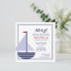Diese nautische Geburtstagsfeier lädt mit einem segelschiff und Marinestreifen auf der Rückseite zum Verweilen ein. Eine Version dieses Designs mit rosafarbener Fahne und Text ist ebenfalls verfügbar, ebenso wie passende Aufkleber und Sake-Tags in unserem Shop.