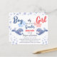 Junge oder mädchenhafte Babywale mit Sternballons Geschlecht offenbaren Einladung für Party.