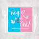 Mädchen oder Junge? Was wird das Baby sein? Einzigartig blau und rosa Party-Servietten mit niedlichen Illustrationen von Storchen, die ein Baby für eine Überraschungsjunge oder Mädchen Gender-Enthüllung feiern. Personalisieren Sie es mit dem Nachnamen des Babys.