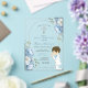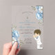 Junge Pracht erste heilige Kommunion Dusty Blue Floral Acryl Einladung Primera Comunión