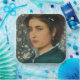 Dieses Design zeigt ein Gemälde des Künstlers Edward Robert Hughes (1851-1914). Es zeigt eine schöne junge Frau; sie ist eine brünette mit einem starken und entschlossenen Blick in ihre Augen. Sie trägt ein grünes Kleid und hat lange schwarze Ohrringe an ihren Ohrläppchen hängen. Ihr Mund ist geschlossen, und ihre Lippen sind rot. Im Hintergrund sind einige weiße Blume auf den Ästen der Bäume; die Frau trägt ein paar Blume in ihren Haaren. Das Originalwerk von E.R. Hughes wurde 1875 gemalt.