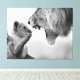 Dieser Leinenprint zeigt einen erwachsenen Löwen, der angiebig an seinen Löwenknochen brüllt, wobei einer der Jungen seine Pfote in einer Spielbewegung mit schwarz-weißen Farben in diesem Stil und Thema von Natur & Tieren hochhält. Unsere Drucke werden mit höchster Auflösung auf dem Baumwolle-Poly-Archivpapier gedruckt, für eine langlebige verblasste Druckmessung. Dieser Druck sorgt für die perfekte Ergänzung, um jede Zuhause oder jedes Büro aufzuräumen.
