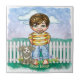 Junge und Hund Fliese von ArtMuvz Illustration. Passende süße Hundeliebhaber-Bekleidung und Geschenke für Hunderassen. Zum Personalisieren fügen Sie Ihren Namen hinzu oder ersetzen Sie den Text. Passen Sie diese Hund-Fliese an, um sie einzigartig zu machen oder als personalisiertes Geschenk zu geben